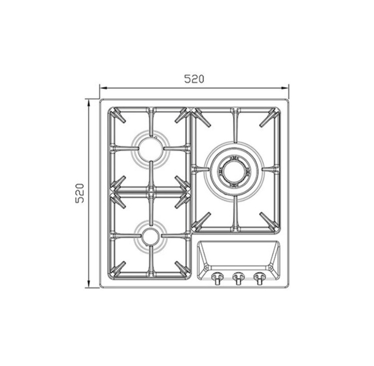 گاز رومیزی استیل البرز مدل S3551 دارای 3 شعله است و شعله پلوپز آن در کنار قرار گرفته است. نمای اجاق گاز استیل کار شده است که در مقایسه با انواع دیگر مقاومتر است. ابعاد آن 52*52 سانتیمتر است. قطعات اصلی این اجاق گاز ایرانی است. ابعاد برش این گاز 495*495 میلیمتر است.