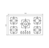 گاز رومیزی استیل البرز مدل G5910W دارای 5 شعله است و شعله پلوپز آن در وسط قرار گرفته است. نمای اجاق گاز شیشه سکوریت سفید کار شده است که در برابر ضربه و حرارت مقاوم است. ابعاد آن 51*91 سانتیمتر است. قطعات اصلی این اجاق گاز ایتالیایی و از برند DEFFENDI است. ابعاد برش این گاز 475*875 میلیمتر است.