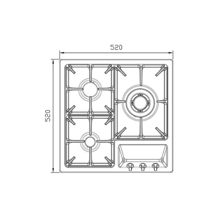 گاز رومیزی استیل البرز مدل S3501 دارای 3 شعله است و شعله پلوپز آن در کنار قرار گرفته است. نمای اجاق گاز استیل کار شده است که در مقایسه با انواع دیگر مقاومتر است. ابعاد آن 52*52 سانتیمتر است. قطعات اصلی این اجاق گاز ایتالیایی و از برند SABAF است. ابعاد برش این گاز 495*495 میلیمتر است.