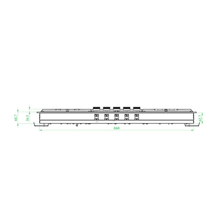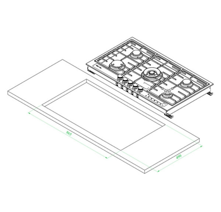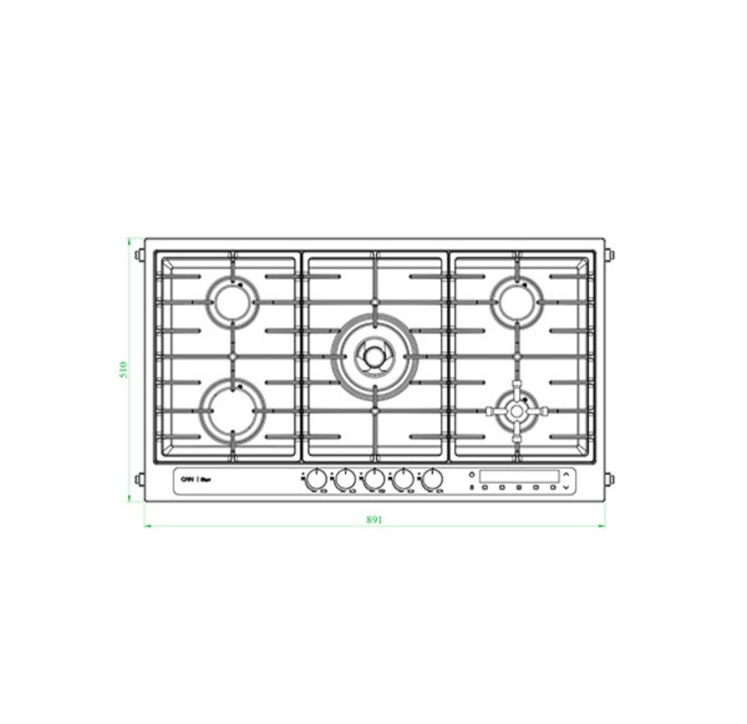 گاز رومیزی کن مدل رایجل (RIGLE) دارای 5 شعله بوده و شعله پلوپز آن در وسط قرار گرفته است. نمای اجاق گاز استیل کار شده است. ابعاد آن 51*89 سانتیمتر است. سرشعله این اجاق گاز رومیزی ساخت ایران است.