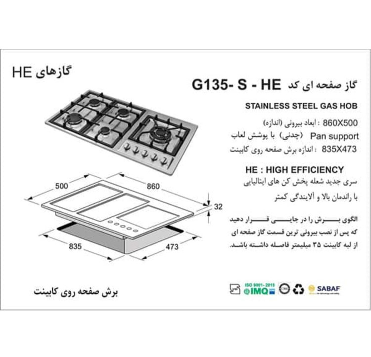 مشخصات گاز رومیزی اخوان کد Gi135-S