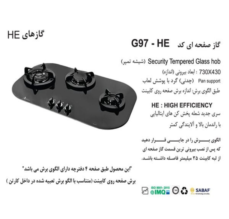 مشخصات گاز رومیزی اخوان کد G97-HE