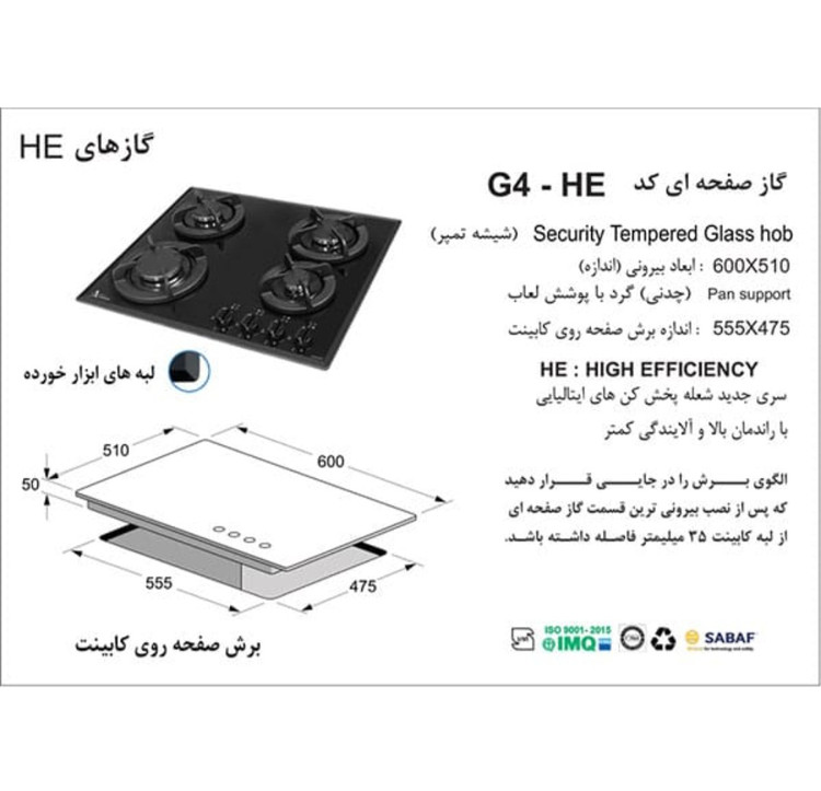 مشخصات گاز رومیزی اخوان کد G4-HE