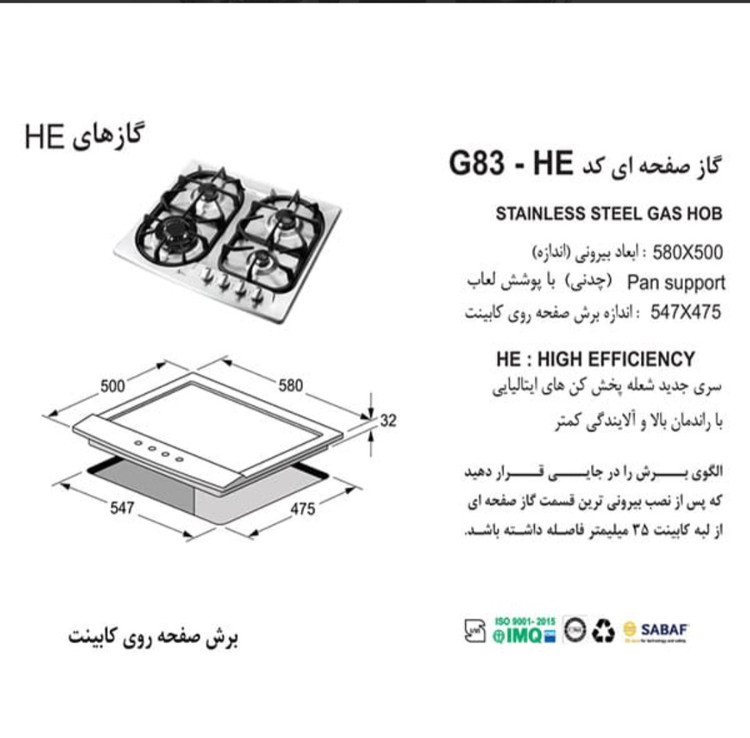 مشخصات گاز رومیزی اخوان کد G83-HE