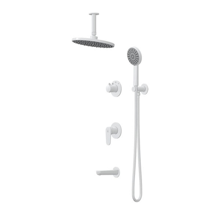 شیر حمام توکار سقفی کاویان مدل لارا تنسو شامل سردوش، گوشی تلفنی، وان پرکن، بازوی سقفی می باشد.