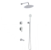 شیر حمام توکار دیواری کاویان مدل لارا تنسو شامل سردوش، گوشی تلفنی، وان پرکن، بازوی دیواری، بدنه مرکزی و بدنه دایورتور می باشد.