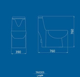 ابعاد این محصول 75.5*39*75.5 سانتیمتر است. این توالت فرنگی از سیستم فلاش دوزمانه استفاده میکند. در سیستم فلاش دوزمانه، مخزن تخلیه از دو حجم کوچک و بزرگ آب بهره میبرد. به طوری که برای مواردی که نیاز به آب زیادی برای تمیز کردن توالت وجود ندارد، از حجم کوچک آب استفاده میکند. با استفاده از این سیستم، مصرف آب کاهش مییابد.