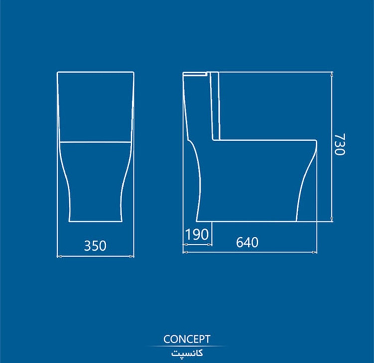 توالت فرنگی چینی کرد مدل کانسپت از نوع یک تکه است و در 2 درجه کیفی ارائه شده است. یک تکه بودن توالت فرنگی به این معنی است که مخزن و کاسه بهم متصل هستند. مدلهایی از توالت فرنگی که به صورت یک تکه هستند، به دلیل نداشتن درز و گوشه و کنار راحت تر تمیز میشوند. رنگ این توالت فرنگی نیز سفید است که زیبایی خاصی به آن بخشیده است.