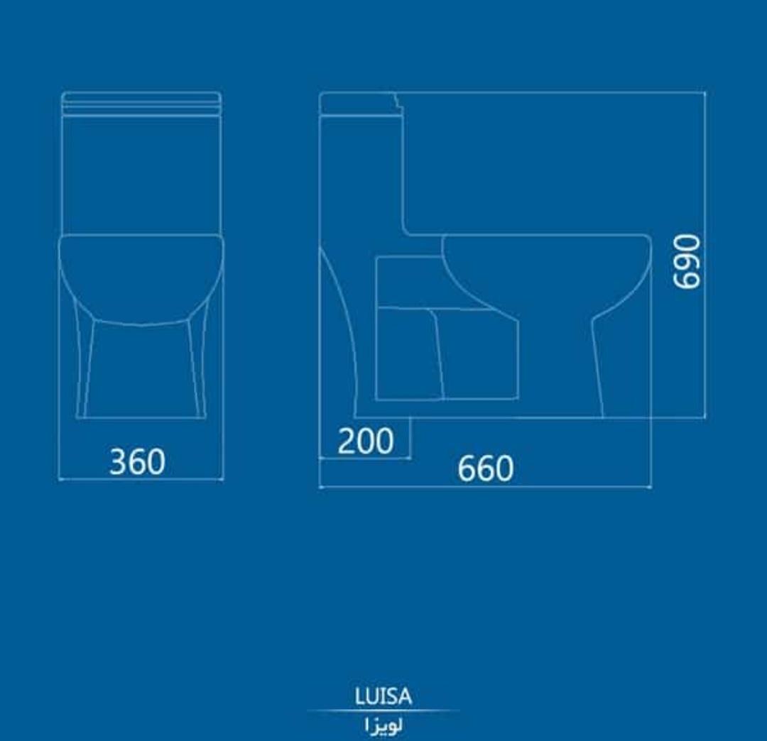 توالت فرنگی چینی کرد مدل لوئیزا از نوع یک تکه است و در 2 درجه کیفی ارائه شده است. یک تکه بودن توالت فرنگی به این معنی است که مخزن و کاسه بهم متصل هستند. مدلهایی از توالت فرنگی که به صورت یک تکه هستند، به دلیل نداشتن درز و گوشه و کنار راحت تر تمیز میشوند. رنگ این توالت فرنگی نیز سفید است که زیبایی خاصی به آن بخشیده است.