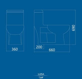 ابعاد این محصول 69*36*66 سانتیمتر است. این توالت فرنگی از سیستم فلاش دوزمانه استفاده میکند. در سیستم فلاش دوزمانه، مخزن تخلیه از دو حجم کوچک و بزرگ آب بهره میبرد. به طوری که برای مواردی که نیاز به آب زیادی برای تمیز کردن توالت وجود ندارد، از حجم کوچک آب استفاده میکند. با استفاده از این سیستم، مصرف آب کاهش مییابد.