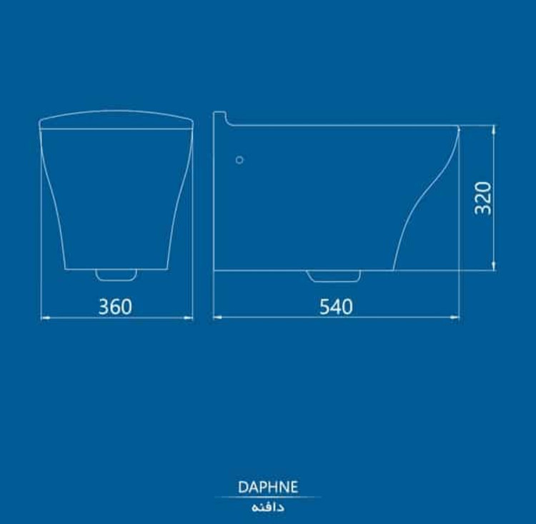 توالت فرنگی چینی کرد مدل دافنه از نوع وال هنگ است و در 2 درجه کیفی ارائه شده است. ابعاد این محصول 32*36*54 سانتیمتر است.