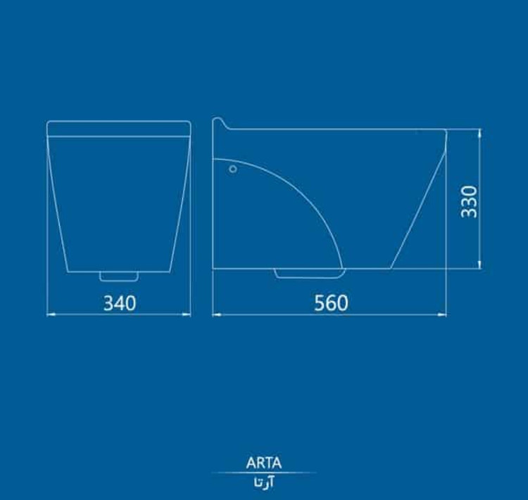 توالت فرنگی چینی کرد مدل آرتا از نوع وال هنگ است و در 2 درجه کیفی ارائه شده است. ابعاد این محصول 33*34*55.5 سانتیمتر است.